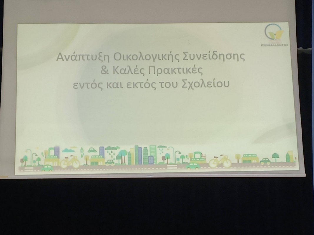 Εκπρόσωποι του Τμήματος Περιβάλλοντος του Υπουργείου Γεωργίας, Αγροτικής Ανάπτυξης και Περιβάλλοντος ενημέρωσαν σήμερα τους μαθητές και μαθήτριες του Σχολείου μας για την κλιματική αλλαγή και τη σημασία απόκτησης οικολογικής συνείδησης. Η διάλεξη περιλάμβανε εισηγήσεις και πρακτικές που αφορούν την προστασία του περιβάλλοντος όπως π.χ. ανακύκλωση, κομποστοποίηση, τηγανοκίνηση, χρήση των πράσινων σημείων, χρήση πράσινων περιπτέρων κ.ά.