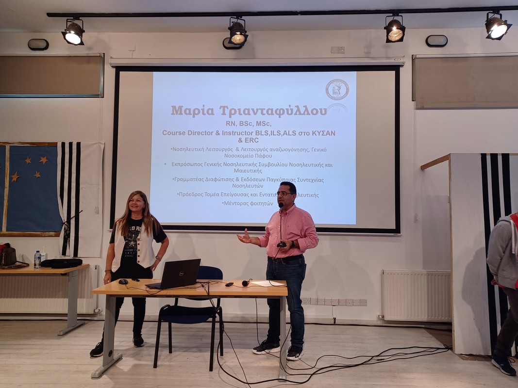 Άλλη μια ενδιαφέρουσα διάλεξη παρακολούθησαν οι μαθητές και μαθήτριες της Α΄ τάξης του Σχολείου μας για το επάγγελμα του νοσηλευτή. Η διάλεξη έγινε από την κα Μαρία Τριανταφύλλου, Νοσηλευτική Λειτουργό και Λειτουργό Αναζωογόνησης στο Γενικό Νοσοκομείο Πάφου.