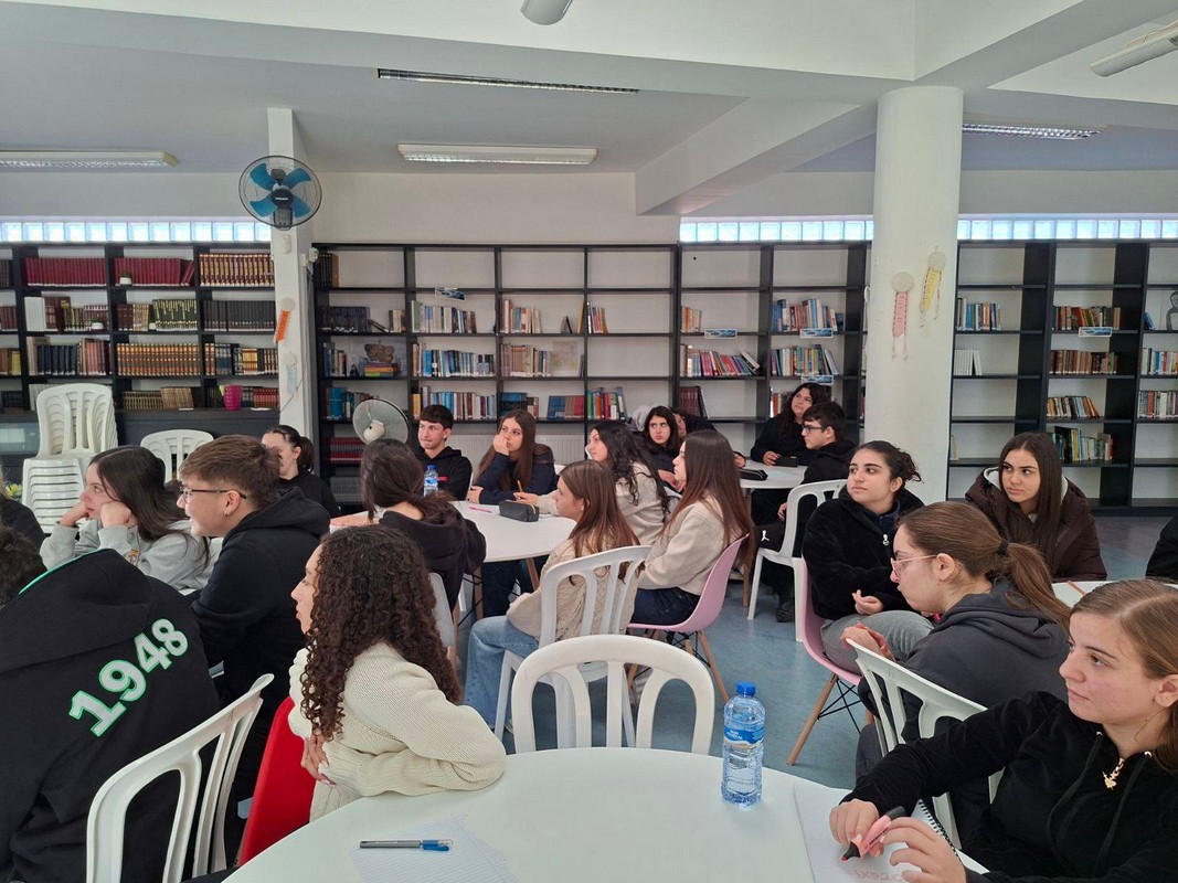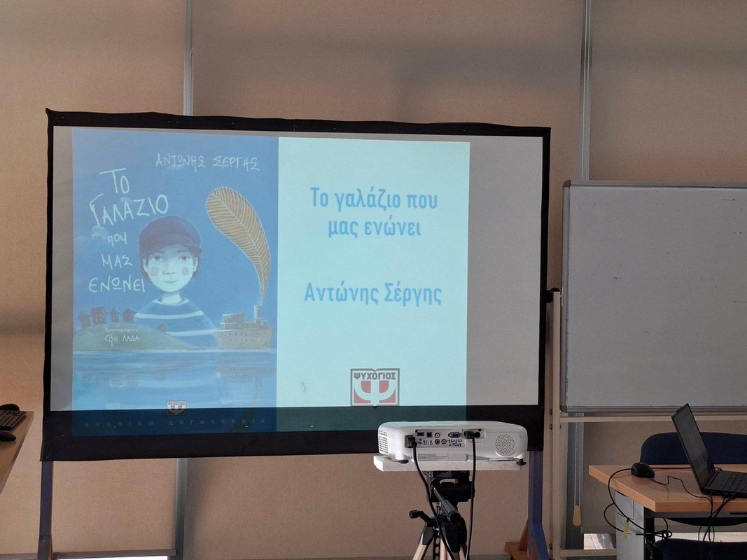 Στο πλαίσιο των δραστηριοτήτων της Βιβλιοθήκης του Σχολείου μας πραγματοποιήθηκε βιωματικό λογοτεχνικό εργαστήρι δημιουργικής γραφής. Ο εκπαιδευτικός και λογοτέχνης Αντώνης Σέργης παρουσίασε το βιβλίο του «Το γαλάζιο που μας ενώνει», ένα φανταστικό συναπάντημα του έφηβου ποιητή Οδυσσέα Ελύτη με μια οικογένεια Μικρασιατών προσφύγων, το οποίο ρίχνει άπλετο, αισιόδοξο φως στις πιο σκοτεινές πτυχές της ελληνικής ιστορίας αλλά και στο σήμερα.