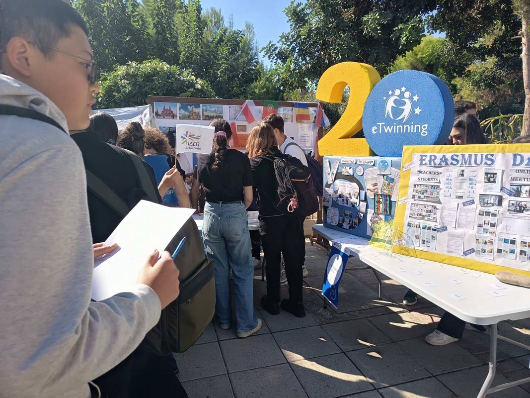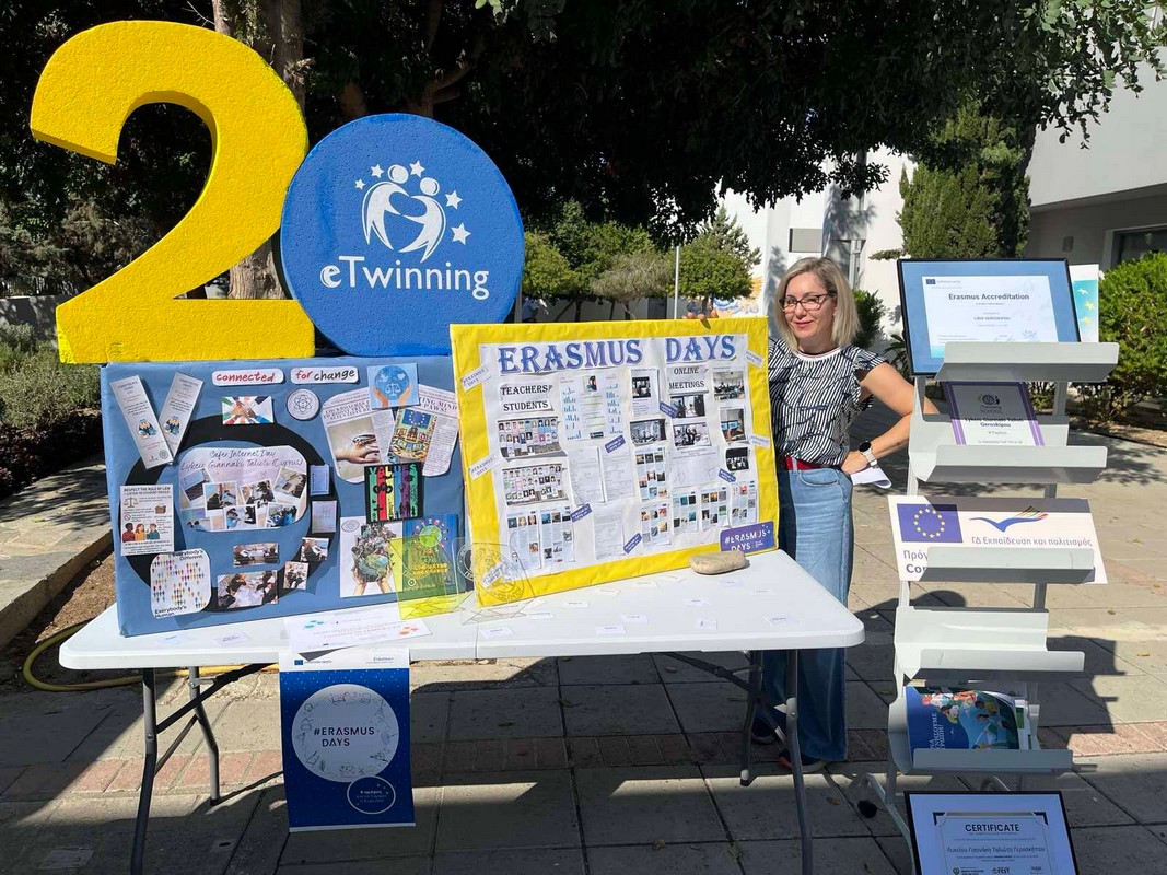 Το Σάββατο 18 Οκτωβρίου το Σχολείο μας συμμετείχε στην παγκύπρια εκδήλωση εορτασμών των Erasmus Days που διοργανώθηκε στην Πάφο από το Ίδρυμα Διαχείρισης Ευρωπαϊκών Προγραμμάτων (ΙΔΕΠ) Κύπρου. Συγκεκριμένα, σε περίπτερο που παραχωρήθηκε από το Ίδρυμα προβάλαμε προγράμματα eTwinning που πραγματοποιήθηκαν στο Σχολείο μας τη σχολική χρονιά 2024-2025, οργανώσαμε παιχνίδια μαθηματικής σκέψης, σταυρόλεξα και quiz.