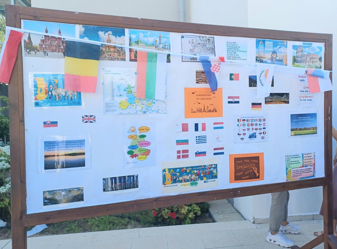 Σήμερα στο Σχολείο μας τιμήσαμε την Ευρωπαϊκή Ημέρα Γλωσσών. Το προαύλιο του Σχολείου μας γέμισε με γεύσεις, μυρωδιές, ήχους και εικόνες ευρωπαϊκές. Οι μαθητές και οι μαθήτριες του Σχολείου μας είχαν παράλληλα την ευκαιρία να λάβουν μέρος σε διάφορες δραστηριότητες, όπως γλωσσοδέτες και κουίζ στις ξένες γλώσσες που διδάσκονται. Την εκδήλωση οργάνωσαν οι καθηγήτριες Ξένων Γλωσσών: Μαρία Χαραλάμπους, Έλενα Λαμπριανού, Μαρίνα Σιαμπουλλή, Αλεξάνδρα-Νεκταρία Μιχαηλίδου, Χαρά Βασιλείου, Βασιλική Μπίλη, Δώρα Παναγή, Έλενα Αχιλλέως.